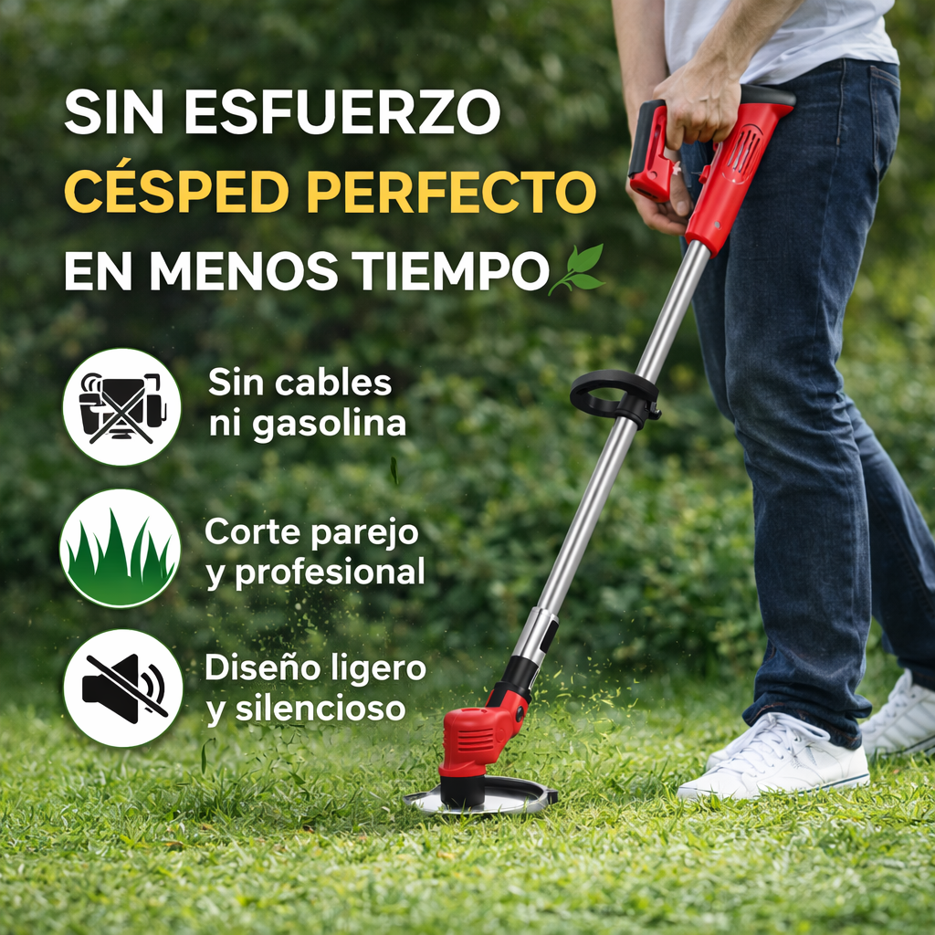 Mantén tu jardín limpio y bien cuidado con esta máquina corta césped práctica y eficiente. Diseñada para ofrecer un corte preciso, uniforme y cómodo, es ideal para patios, jardines y áreas verdes del hogar, incluso para personas sin experiencia.
