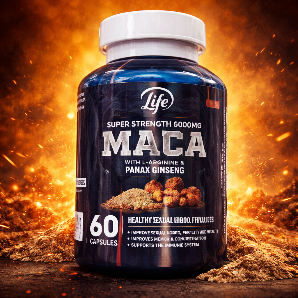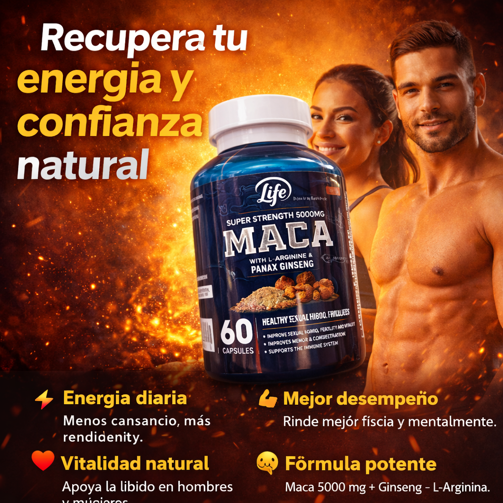 Maca 5000 mg con L-Arginina y Ginseng para hombres y mujeres que quieren rendir más.