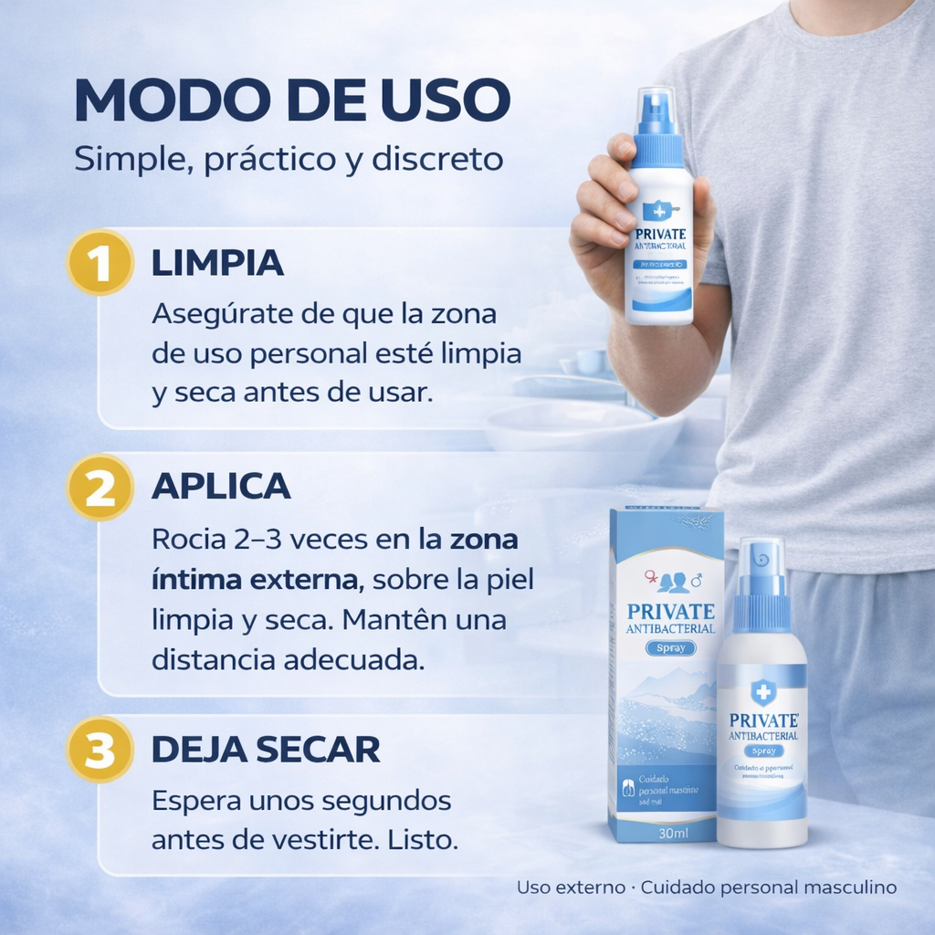 Spray de cuidado personal diseñado para hombres que buscan frescura, comodidad y confianza durante todo el día. Ideal para el uso diario, fácil de aplicar y pensado para acompañarte en cualquier momento, sin complicaciones.